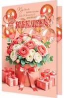 Плакат фигурный 8 Марта (мальчик с девочкой и букеты)