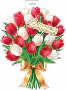Плакат фигурный 8 Марта (мальчик с девочкой и букеты)